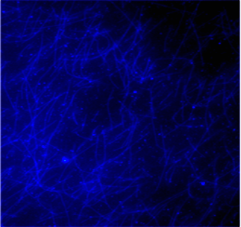 AMCA labeled microtubules formed from AMCA labeled tubulin.