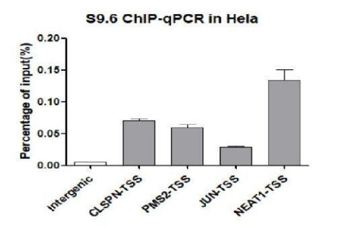 Chromatin immunoprecipitation analysis of HeLa cells genomic DNA(gDNA) using DNA-RNA hybrid Mouse Monoclonal Antibody [S9.6] at dilution of 1:200