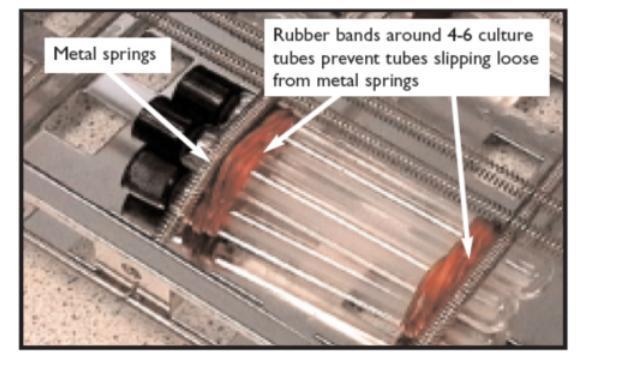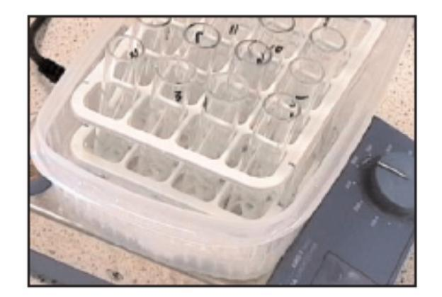 3.蓋緊試管蓋子,用渦旋振蕩器混勻,臥式放入振蕩水浴器,與運(yùn)動(dòng)方向平行。