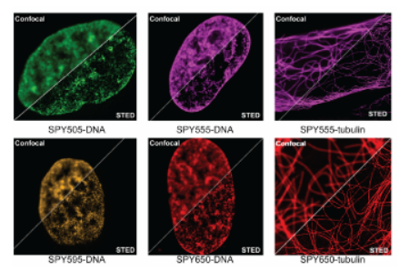 SpriroChrome的確落實了科研使命, 在Nature Chemistry 和 Nature Methods發(fā)表的具有里程碑意義的論文中,已經(jīng)推出新型熒光基團 SiR-actin和SiR-tubulin,在活細胞中的細胞骨架進行成像, 達到以前熒光染劑無法做到的分辨率 .