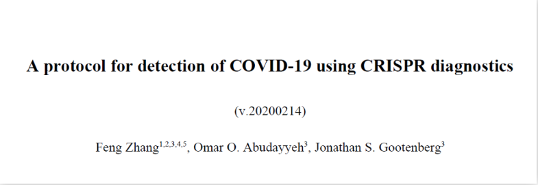 張鋒實(shí)驗(yàn)室公布CRISPR程序檢測COVID-19的詳細(xì)方案