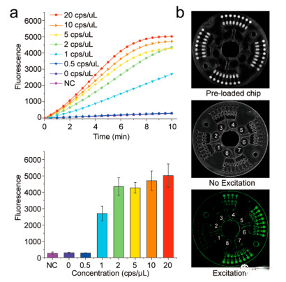 圖5 基于雙CRISPR/Cas12a輔助RT-RAA的自動微流控平臺上檢測SARS-CoV-2