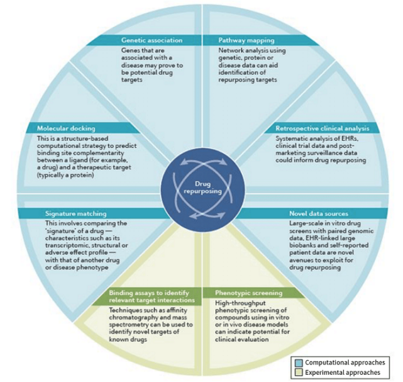 藥物功能重定位,也稱老藥新用,是一種用于發(fā)現老藥或在研藥物超出原始批準的適應證,擴大其適用范圍和用途的策略。新藥研發(fā)是一個高失敗率、高成本且緩慢的過程,而藥物功能重定位具有研發(fā)成本低、開發(fā)時間短的優(yōu)點,所以重利用老藥來治療常見和罕見的疾病變得越來越有吸引力。