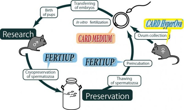 精子冷凍保存是實(shí)驗(yàn)室小鼠品系保存的經(jīng)濟(jì)實(shí)用的方法。FERTIUP@和CARD MEDIUM@產(chǎn)品是用于小鼠精子冷凍保存、精子孵育及體外受精的高性能培養(yǎng)基。當(dāng)FERTIUP@和CARD MEDIUM@聯(lián)合使用時(shí),可使凍融的小鼠精子保持穩(wěn)定的高受精率,在您需要的時(shí)候可以繁殖小鼠。相比傳統(tǒng)方法,F(xiàn)ERTIUP精子凍存液、預(yù)孵化培養(yǎng)基可顯著改善C57BL/6 和 129小鼠品系凍融精子的受精率10%~30%。此外,新的CARD MEDIUM@將繁殖率提高到了80% 以上。FERTIUP@和CARD MEDIUM@不存在任何的生殖毒性,為安全可靠的保存您珍貴的小鼠品系提供了強(qiáng)有力的支持。