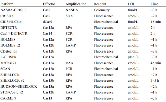 已報道的多種基于 CRISPR 的分子檢測技術比較