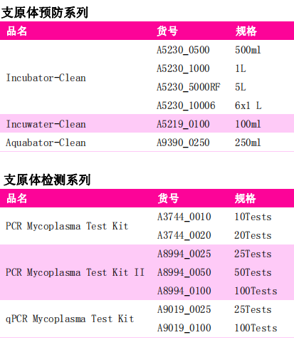 注:Myco-3停用2周后方可進(jìn)行支原體檢測(cè)。