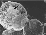 酶解酶可用于酵母菌聚糖外殼和球質(zhì)體的酶解形成。箭頭指示球質(zhì)體的細胞核和細胞內(nèi)成分通過部分消化的質(zhì)膜 *資料來源: 通過掃描電子顯微鏡(SEM)分離和可視化酵母細胞核的方案 Elena Kiseleva, Terry D Allen, Sandra A Rutherford, Steve Murray, Ksenia Morozova, Fiona Gardiner, Martin W Goldberg & Sheona P Drummond. Nature Protocols 2, 1943 - 1953 (2007) Published online: 9 August 2007 doi:10.1038/nprot.2007.251