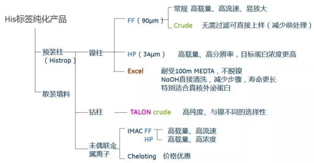 His標(biāo)簽是一個只有6個組氨酸的小標(biāo)簽,但神通廣大。首先,His標(biāo)簽比較小,對蛋白結(jié)構(gòu)和功能影響較小,一般純化后也可以無需切除;其次,His標(biāo)簽可以和其他標(biāo)簽一起使用,增加純化的純度;此外,His標(biāo)簽也可以在變性條件下進(jìn)行蛋白純化,適用于特殊的操作或者包涵體純化;最后,His標(biāo)簽蛋白的純化方式多樣,純化工藝也非常成熟,可以選擇重力操作和離心操作,也可以選擇AKTA純化系統(tǒng)。