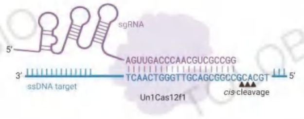 · Cas12f核酸酶是依賴sgRNA介導(dǎo)的內(nèi)切核酸酶,傾向于特異結(jié)合并剪切靶標(biāo)ssDNA,且無需PAM位點(diǎn)